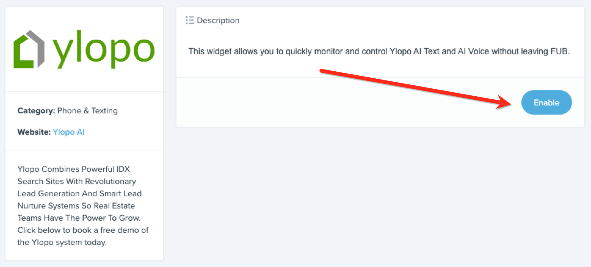 The Ylopo AI Embedded App lets you quickly monitor and control Ylopo AI Text and AI Voice without leaving FUB.