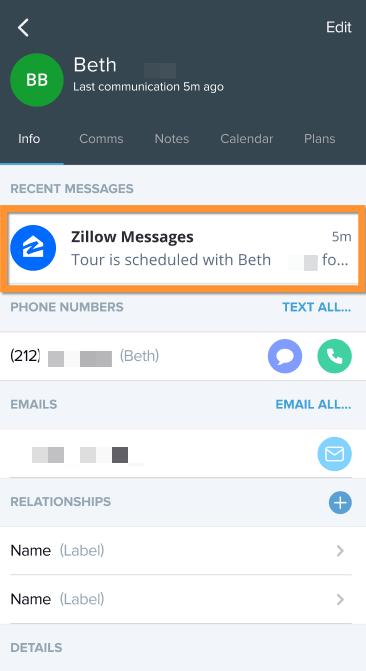 Please note: Zillow Messages does not automatically update the last communication filter yet. This is coming soon! If you have Smart Lists that prioritize leads by "last communication", we recommend opening the lead profile page to communicate from there, so you can see if the last message was sent from Zillow Messages.