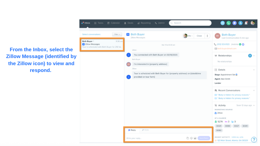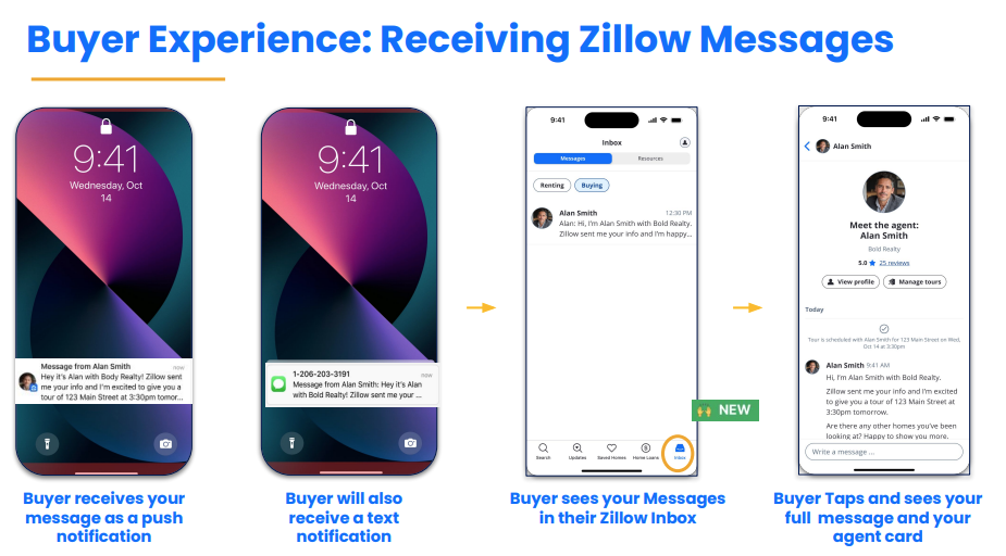 Buyer leads that come from tour requests and property inquiries will have a Zillow Message conversation started automatically.