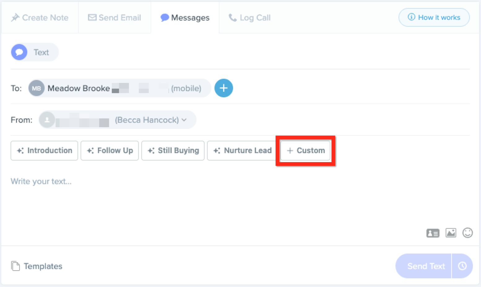 4. A generated message will appear based on the lead's context