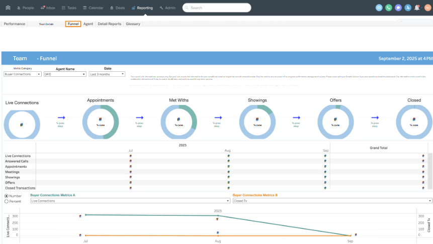 On this tab, you can see connection delivery by month and your team’s conversion down funnel.
