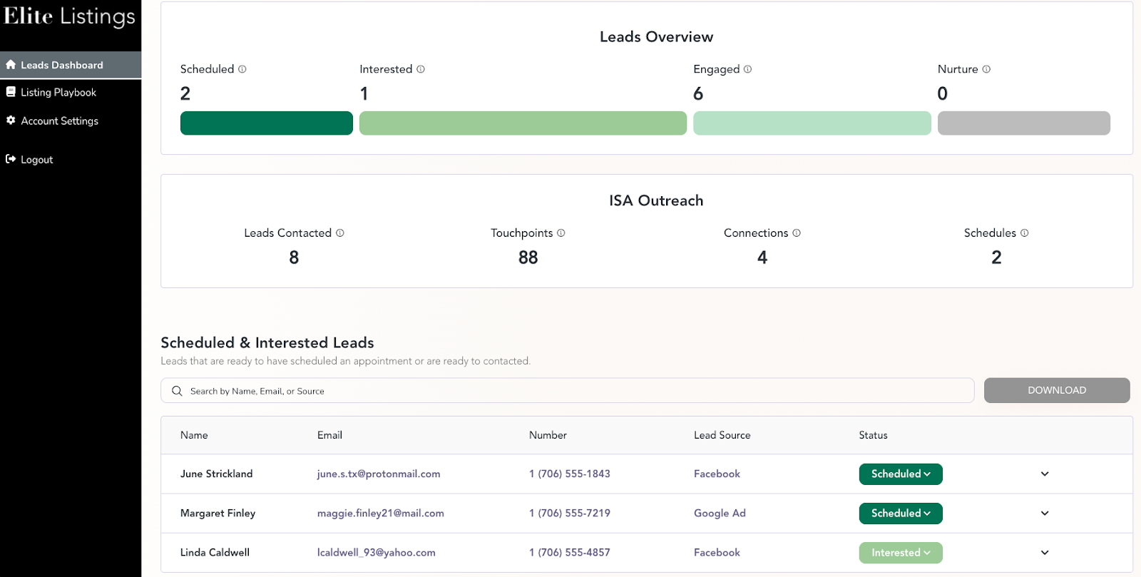 Elite Listings is a turnkey lead generation and nurturing platform designed specifically for real estate agents. We run high-performing ad campaigns across Facebook, Instagram, and Google to deliver 15–25 exclusive leads per month — and every lead is automatically contacted by our Inside Sales Agents (ISAs) via phone, text, and email to help warm them up.