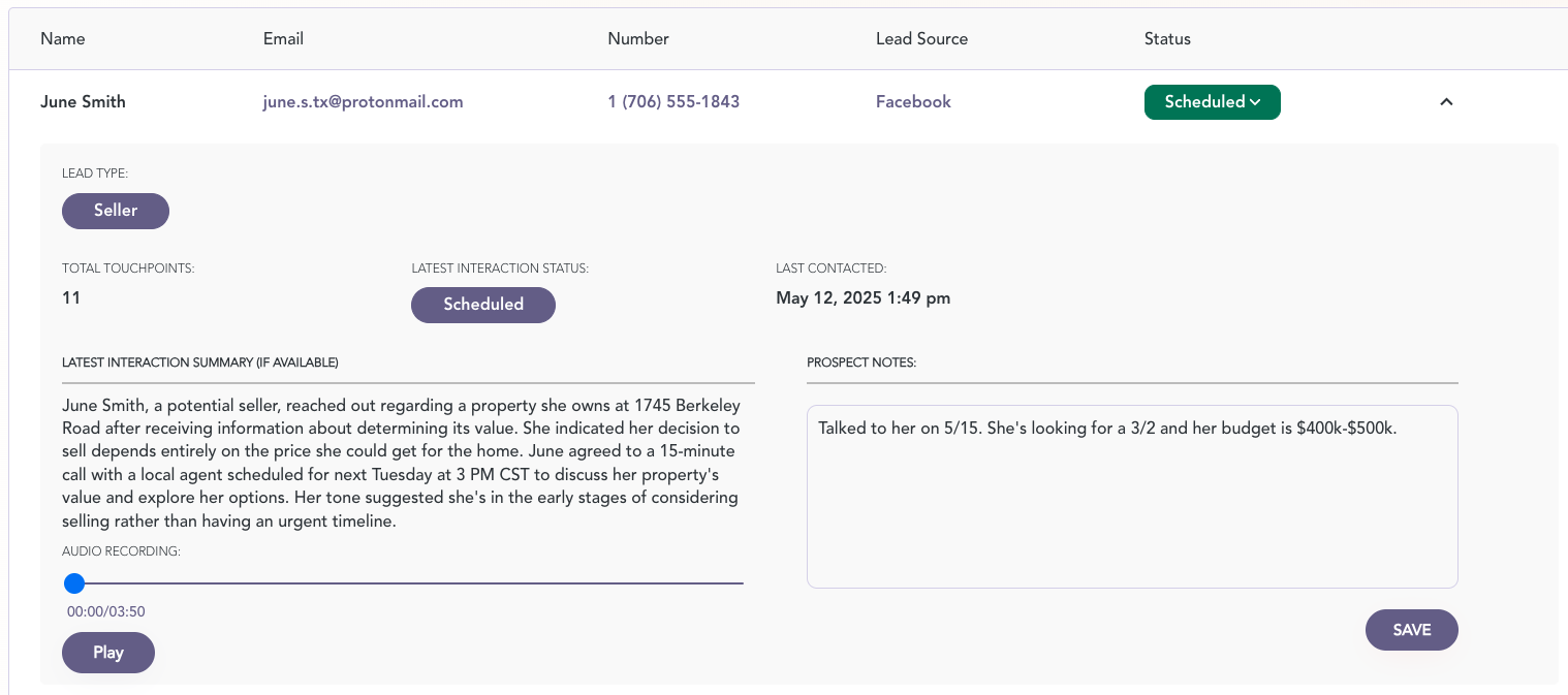 Qualified leads are automatically synced to your Follow Up Boss account in real-time. No manual input needed.