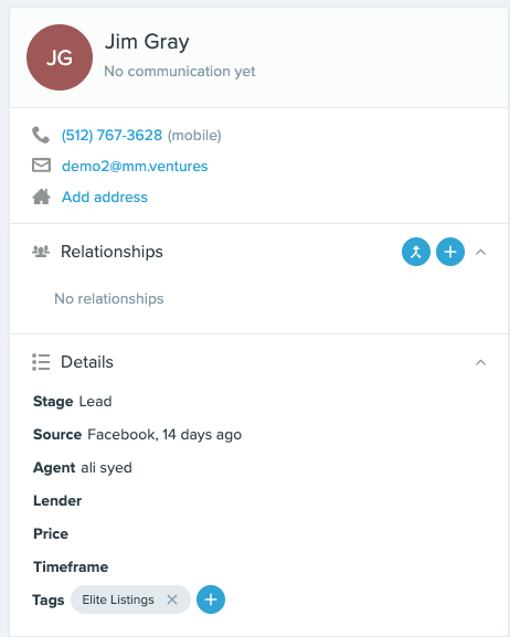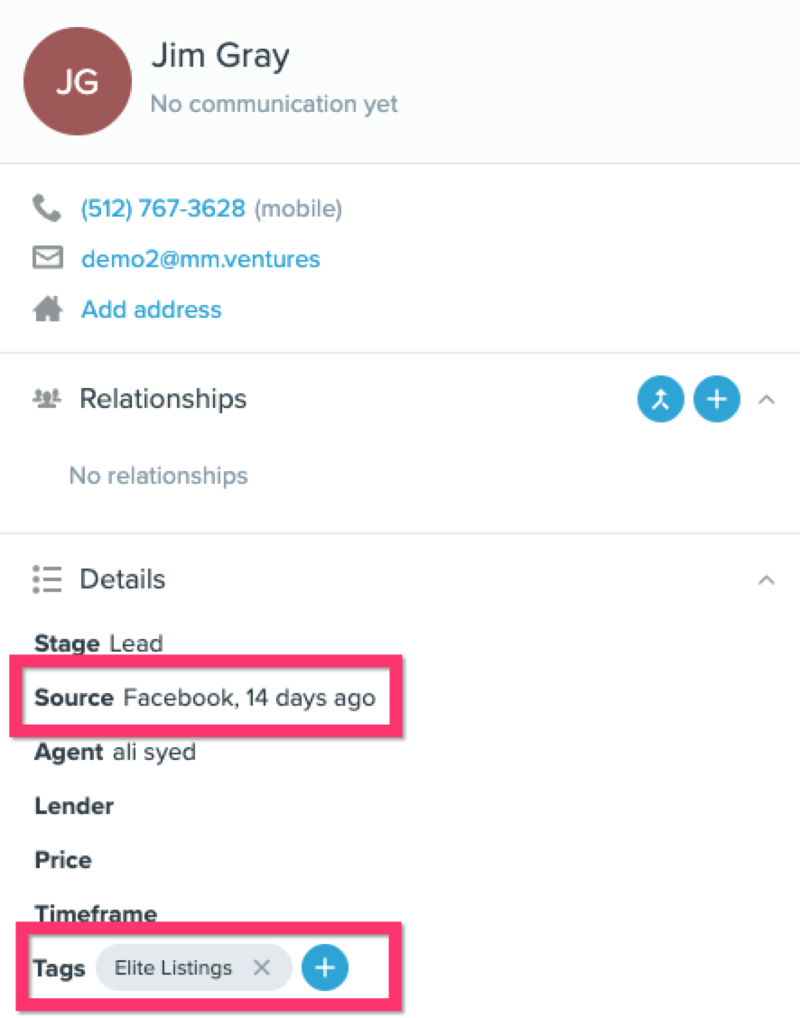 8. Any existing leads in Scheduled or Interested status ‘scheduled’/’interested’ status automatically populate in your Follow Up Boss people list. They will have a tag called Elite Listings and will also include the source where we generated the lead (e.g., Facebook, Google). New leads will be synced to Follow Up Boss shortly after they reach Scheduled or Interested status in Elite Listings.