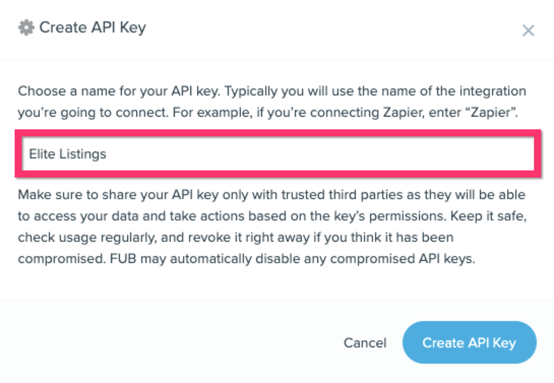 3. Name the API Key Elite Listings > Create API Key