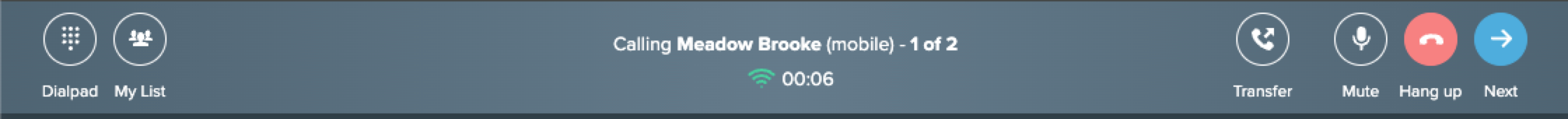- Next: Instantly call the next contact on the list