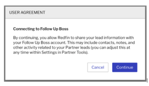 5. Acknowledge that your leads from Agent Tools will automatically populate in Follow Up Boss by clicking Continue