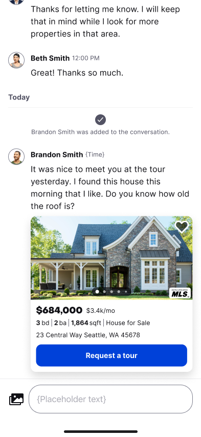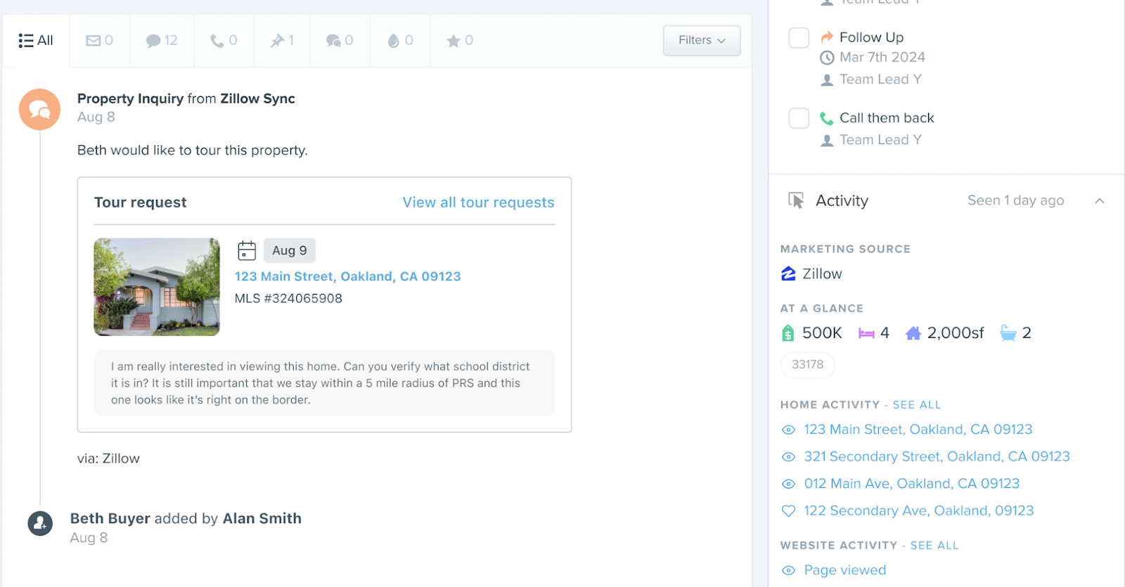 This experience is available for Zillow partner agents with the Zillow two-way integration enabled and accounts linked. It can help you stay on the same page with everyone involved in the home search — so you can deliver faster, more personalized follow-up and keep your brand front and center as they browse on Zillow.