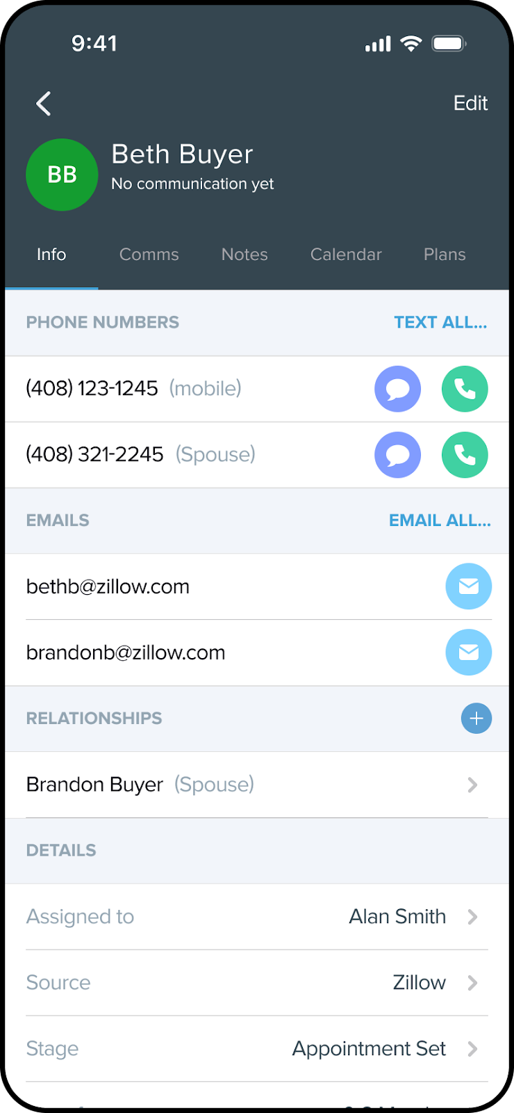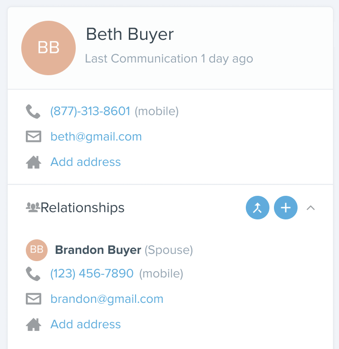 - You’ll see the buying partner added to your buyer’s lead profile page in FUB as a relationship, making it easier to manage the entire buying team from a single lead profile page on FUB desktop and mobile.