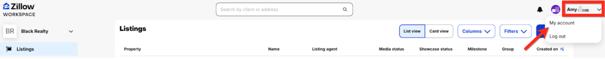 Admins and agents can connect their Follow Up Boss account by logging in to Workspace on the desktop and navigating to My Account in the upper right-hand corner.