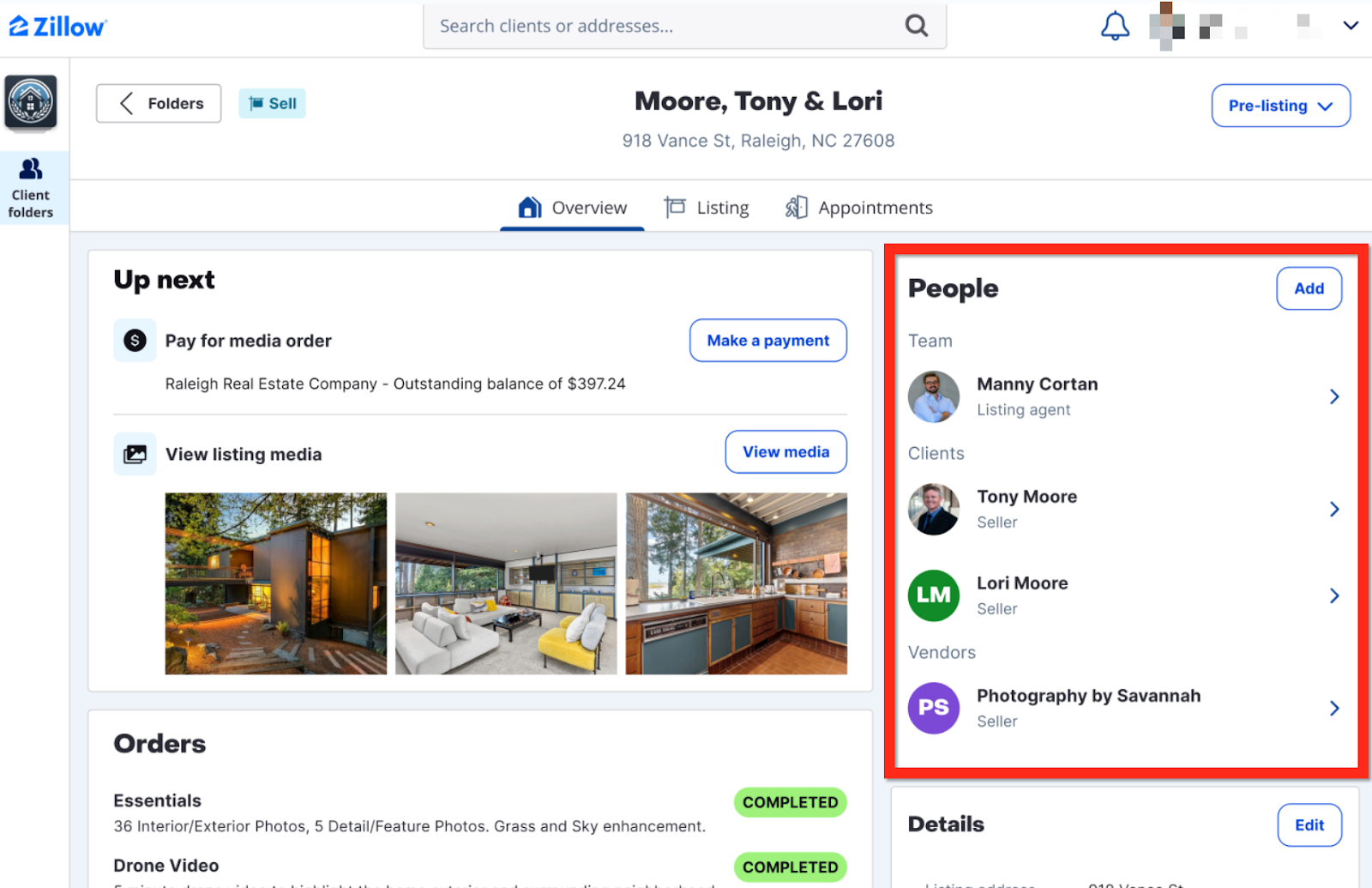 Agents and admins can add contact(s) to a listing in the People section of the Overview screen.