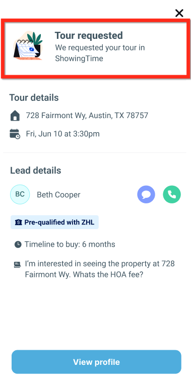 We requested your tour in ShowingTime