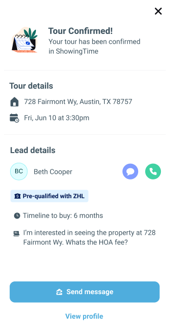 Your tour has been confirmed in ShowingTime