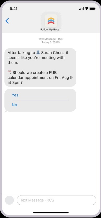 You’ll receive automatic CRM update suggestions by text message from Follow Up Boss after calls made with your FUB phone number.
