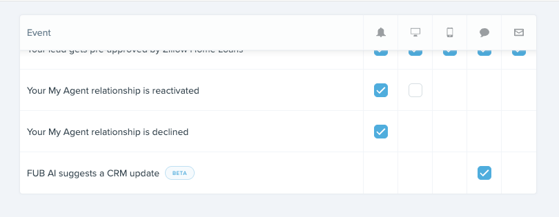 - CRM update text messages will be paused daily from 9:00 PM to 8:00 AM local time, in alignment with other FUB text notifications. Call suggestion notifications will resume at 8:00 AM local time and will include all suggestions generated between 9:00 PM and 8:00 AM, so you don’t miss anything.