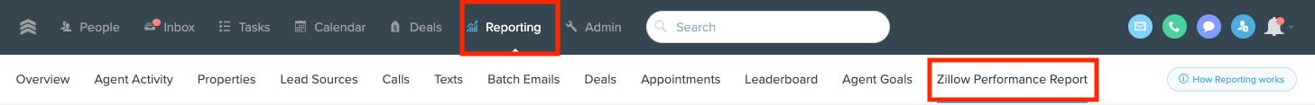 - If you do not see the Zillow Performance Report, confirm that your FUB account has the Zillow two-way integration enabled.