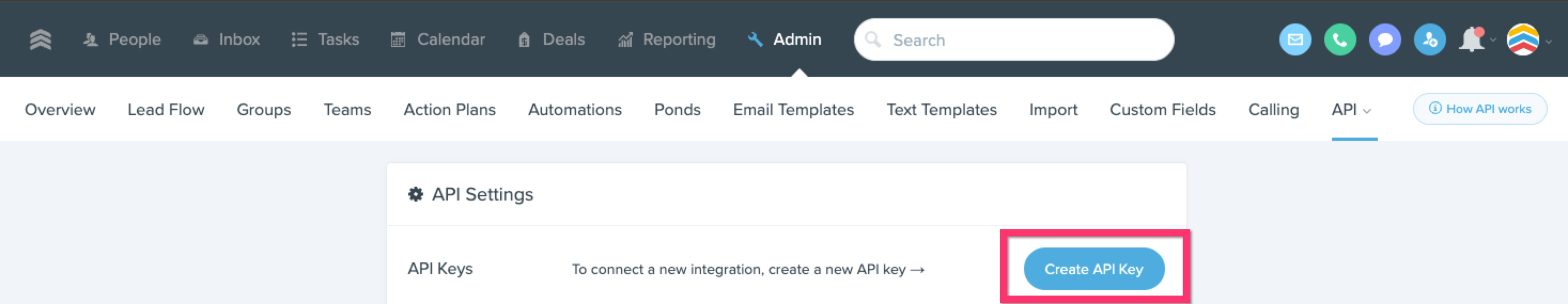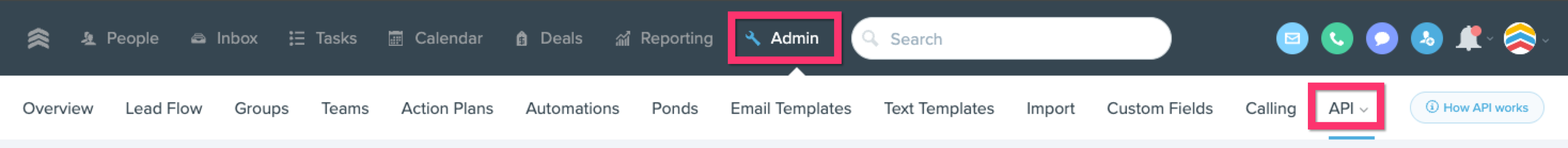 1. Create a Follow Up Boss API Key by going to Admin > API.