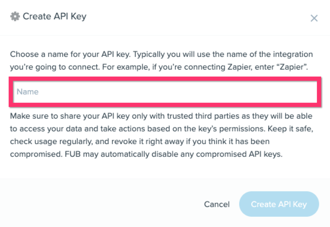 5. Contact your Realistic RE Program Manager for instructions on how to securely share your FUB API key with their team.