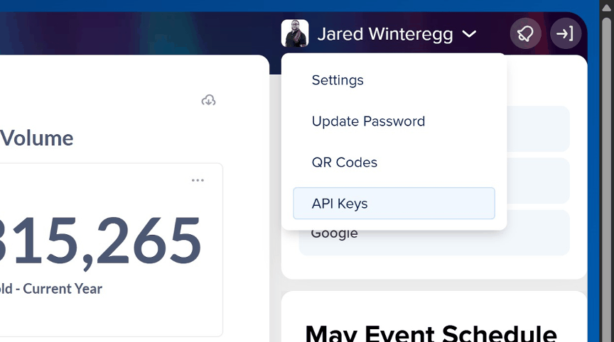 1. Log in to your Realistic RE account, click your profile icon, and select API Keys.