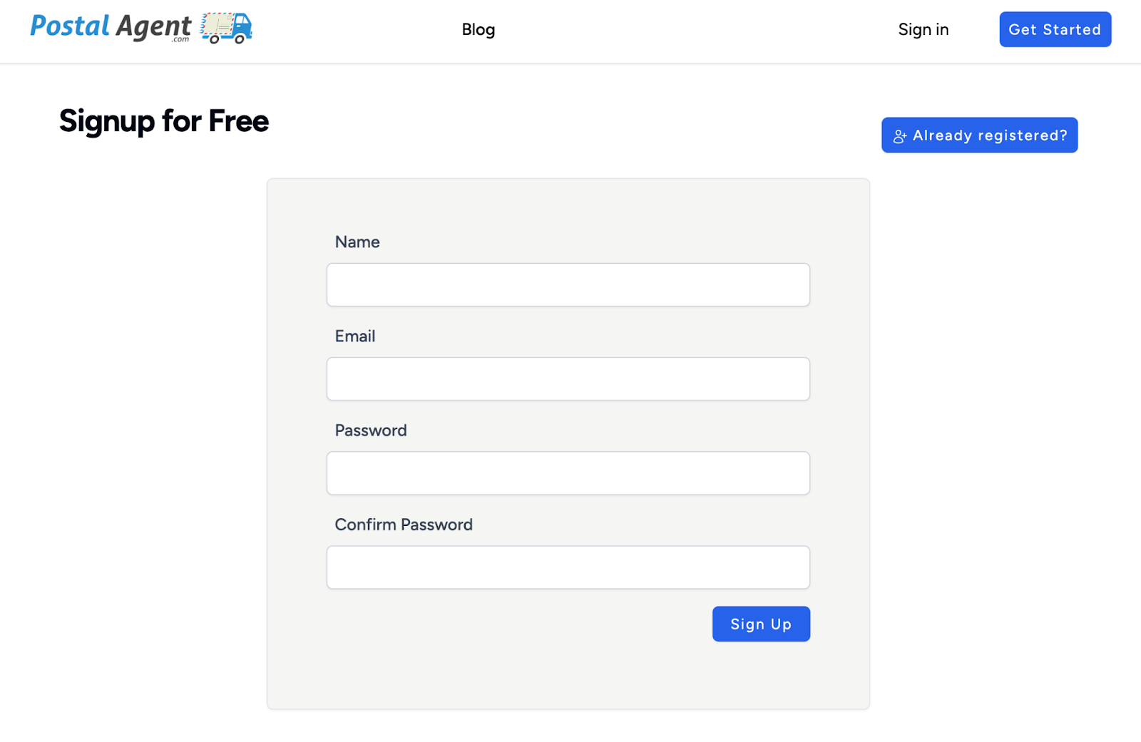 - Sign up for a free PostalAgent account at postalagent.com, or log in if you already have one.