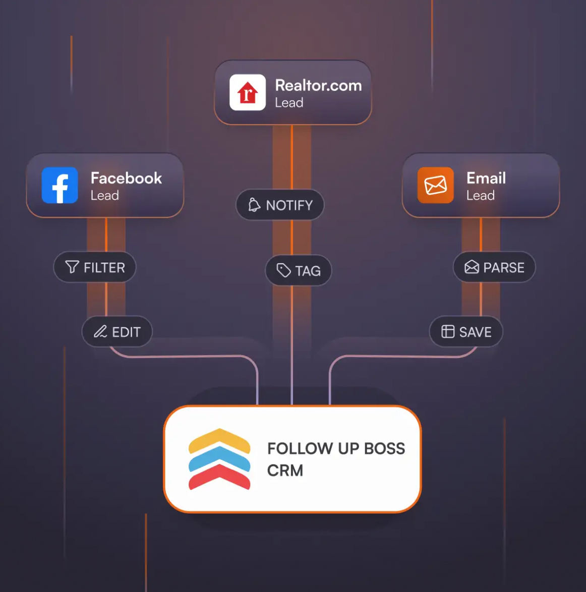 - Pushing marketing engagement, transaction updates, or back-office data into Follow Up Boss.