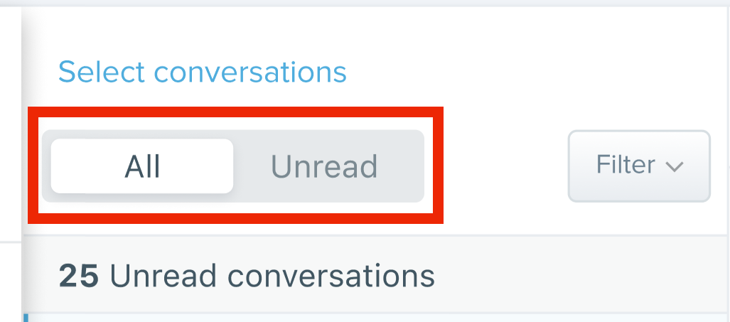 - When you select Unread, you’ll see only conversations you haven’t read yet, plus a real-time unread count.