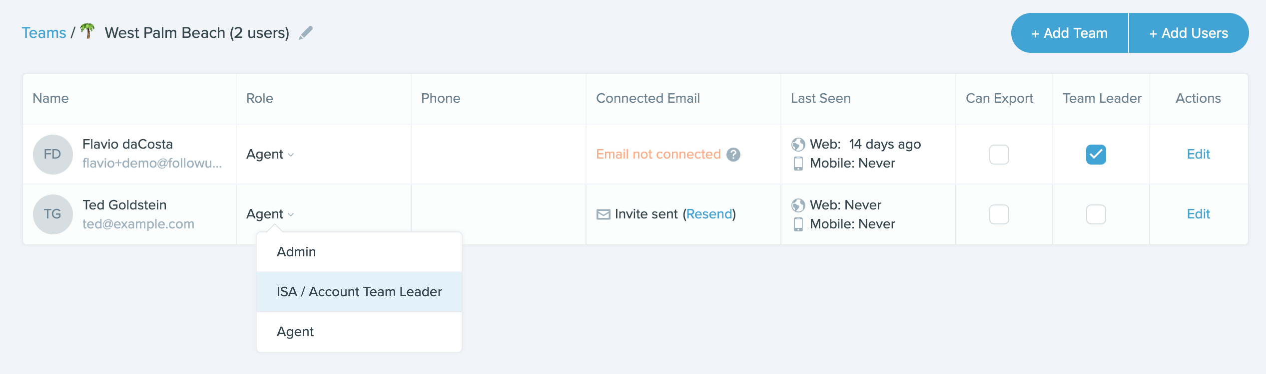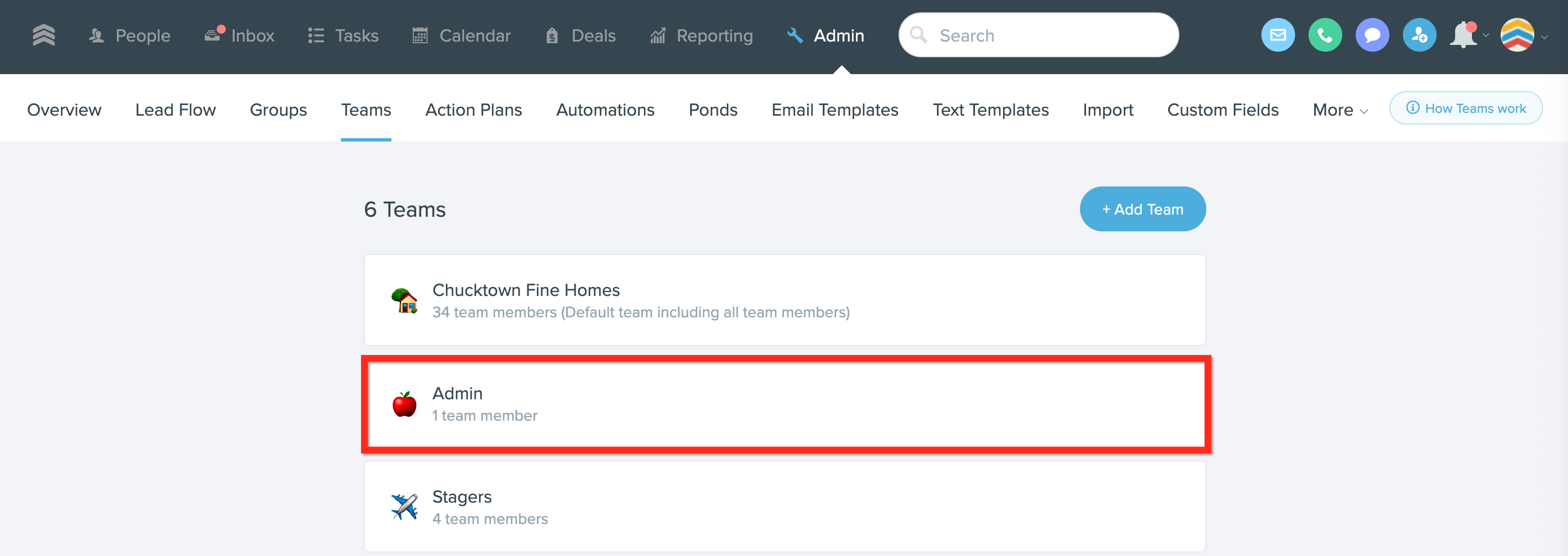 Use Teams to quickly scope smart lists, reports, and more to specific groups of people on the team. Great for ISAs, multiple office locations, or teams within your brokerage! The team leader role allows agents to see leads who are assigned to anyone else on their team. Learn more about roles here.
