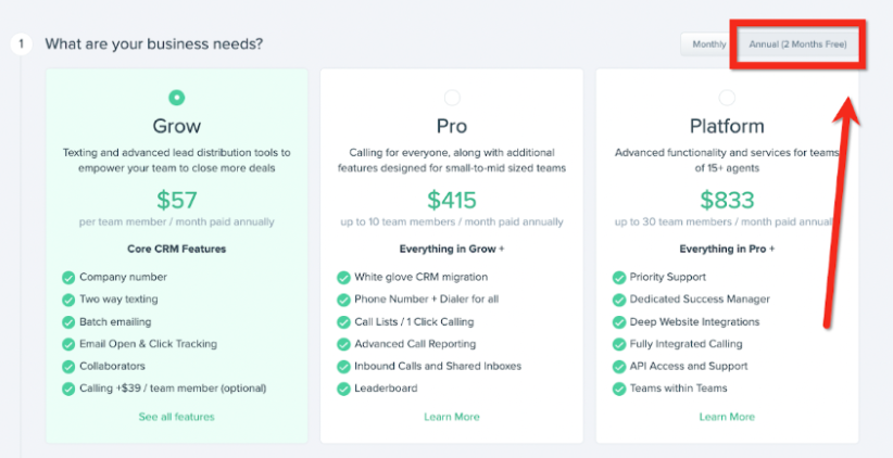 To receive savings of 2 months, select the annual billing option in the upper right-hand corner.