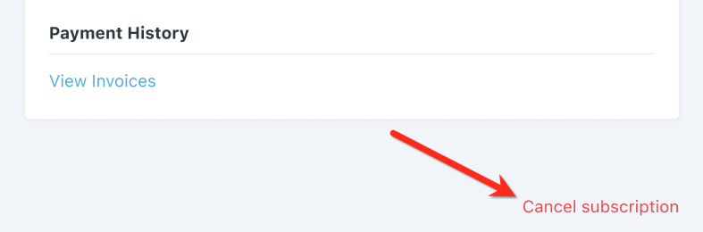 The subscription can be canceled by clicking Cancel Subscription in the lower right-hand side of the billing page. When canceling, the system will default to canceling the subscription at the end of the payment period. If you prefer to cancel immediately, select "Cancel Account Immediately" on the billing page after canceling.