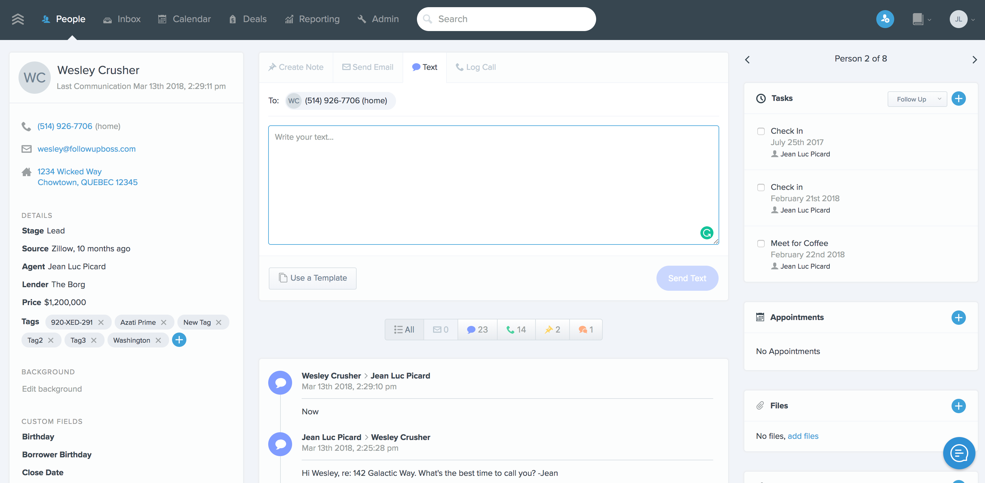 Follow Up Boss has features like 2-way texting, email sync, automated follow-ups and reminders without the complicated interface or complex layout.