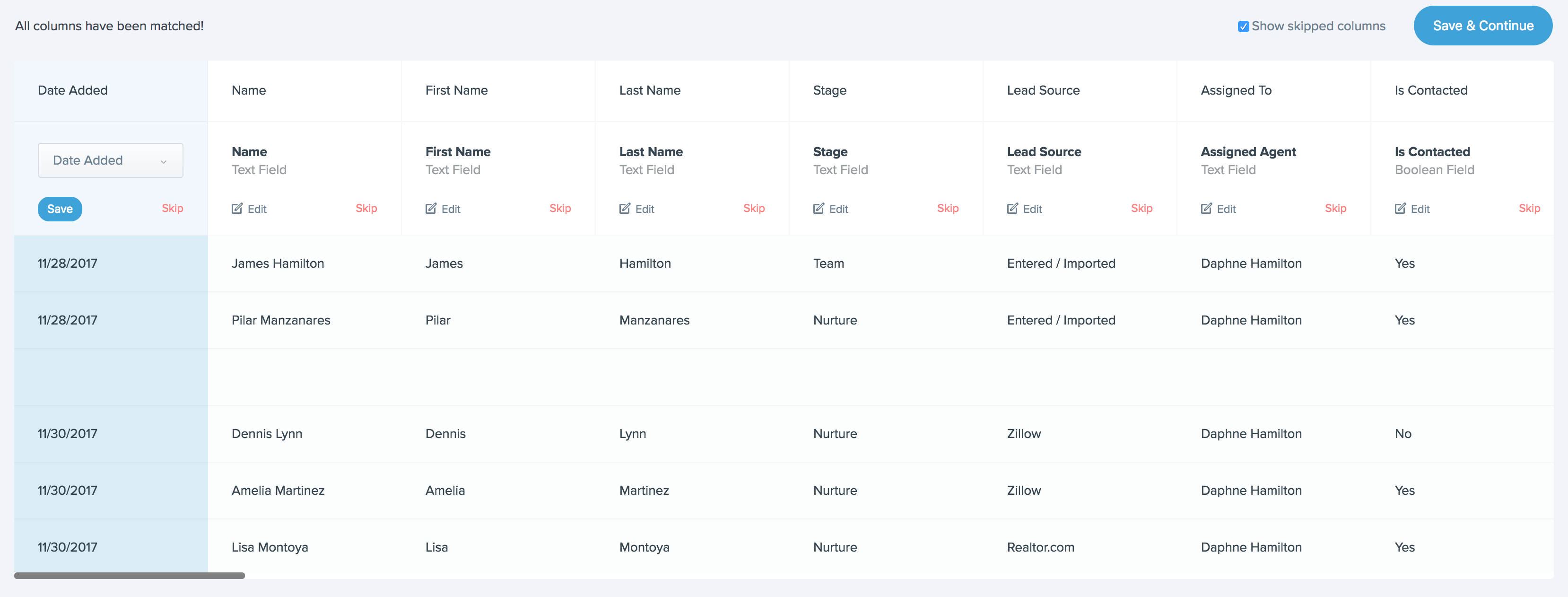Follow Up Boss's intuitive import tool will allow you to import any CSV file and map the fields of your choice.