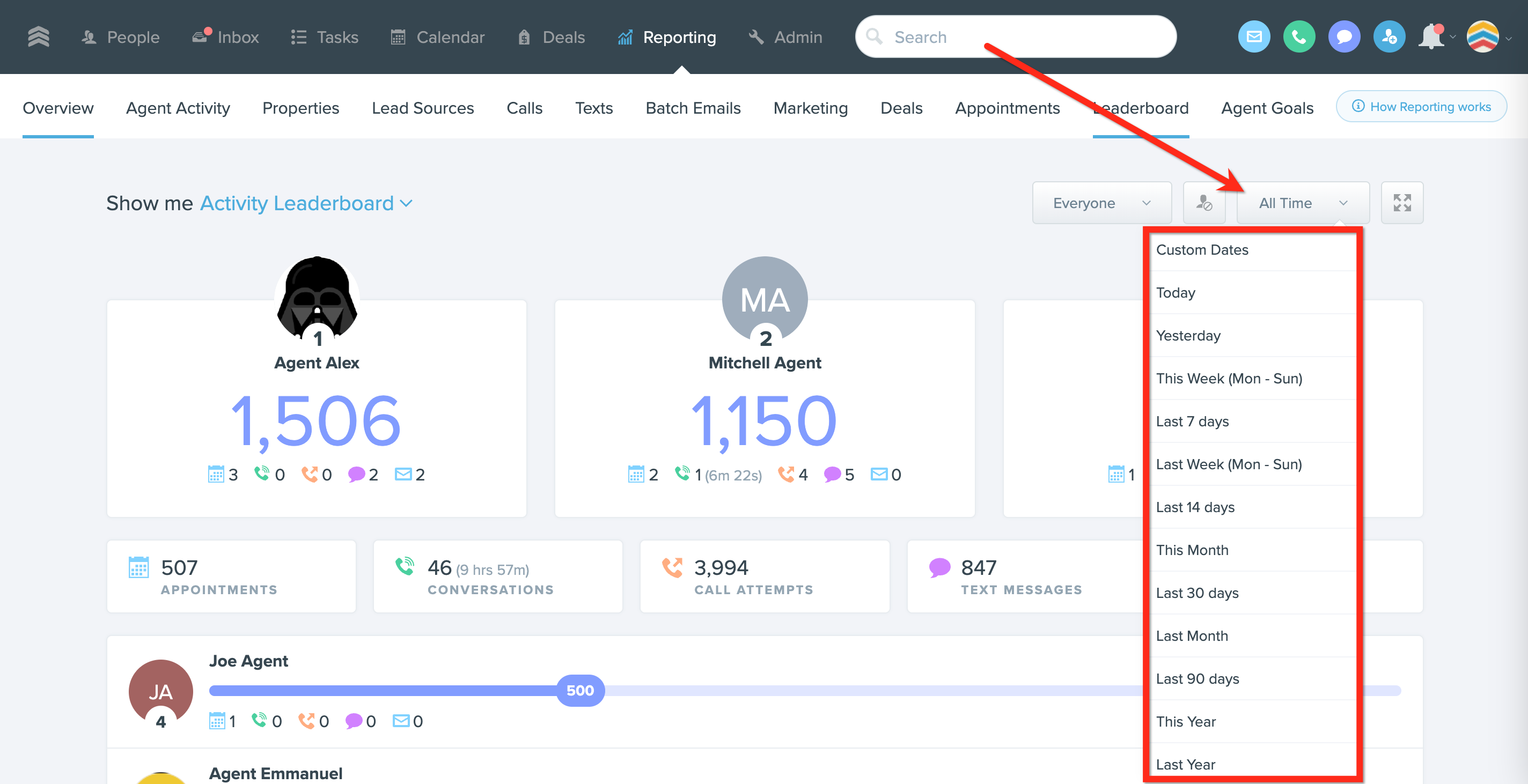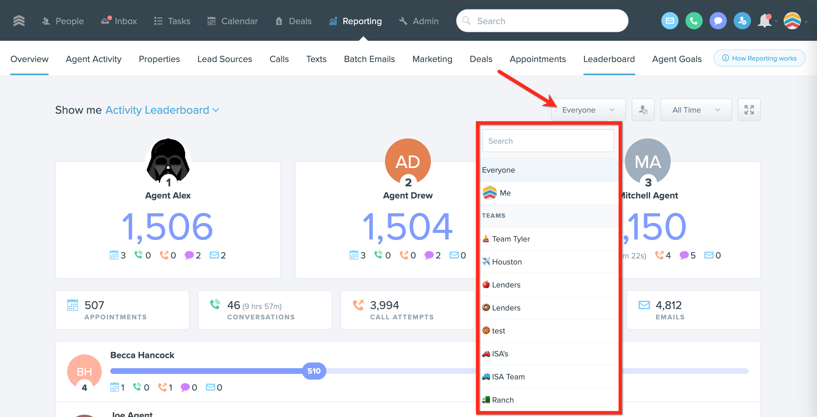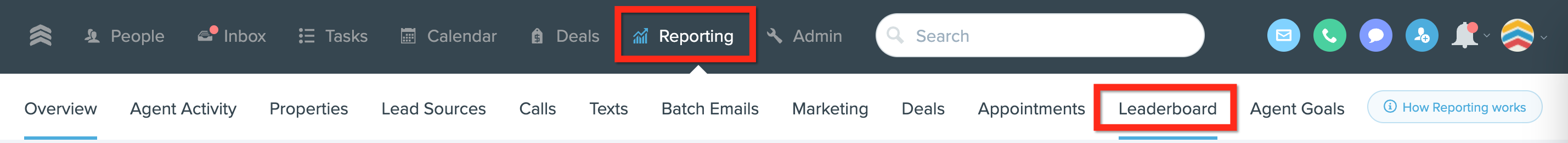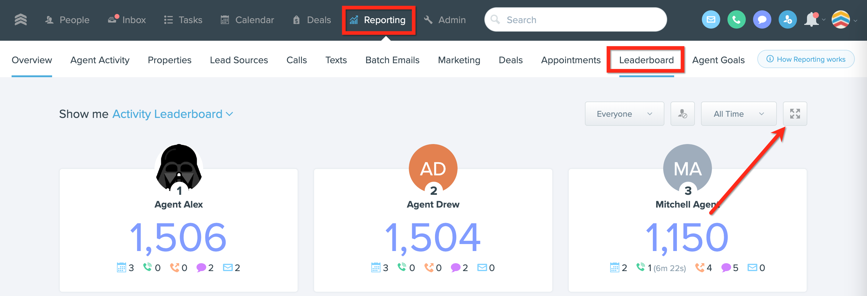 1. Go to Reporting > Leaderboard