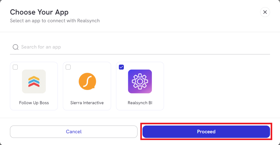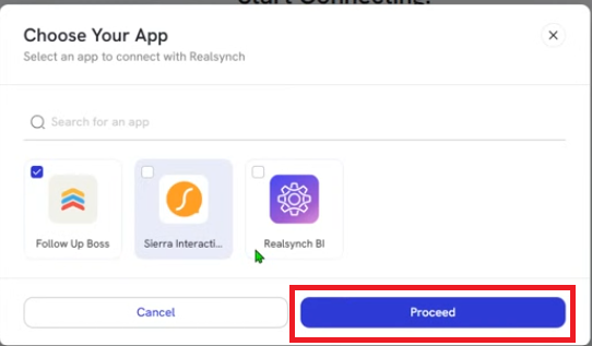 - Choose the App you would like to connect, then click Proceed: