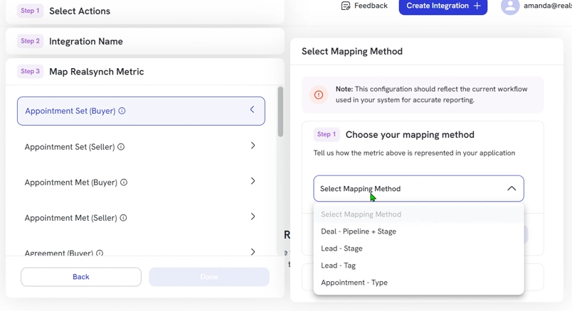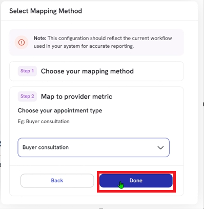 - Lastly, select your mapping method for each metric: