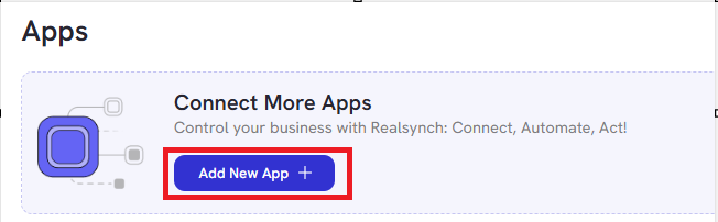 - Next, the Realsynch BI needs to be connected. Select Add New App:
