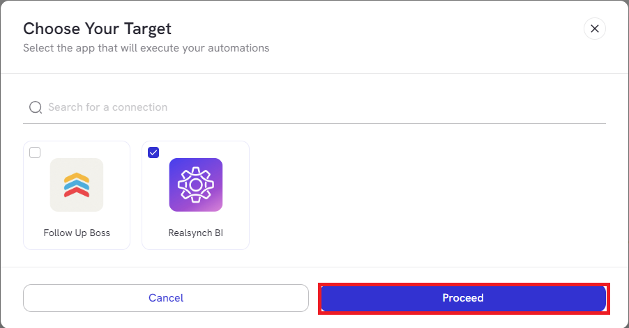 - Select Realsynch BI as your target and click Proceed.